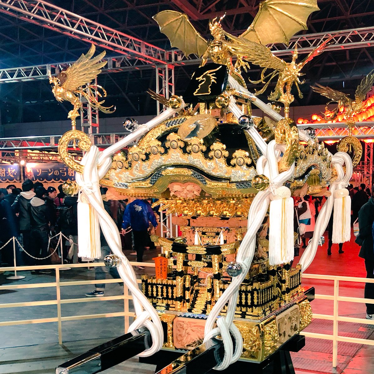 グラブル神輿!浅草の御神輿師作(凄!)バハムートに、4方に木彫りのユグやリヴァ、四象など。他にも隠れてそう。もっと近くで見たい!