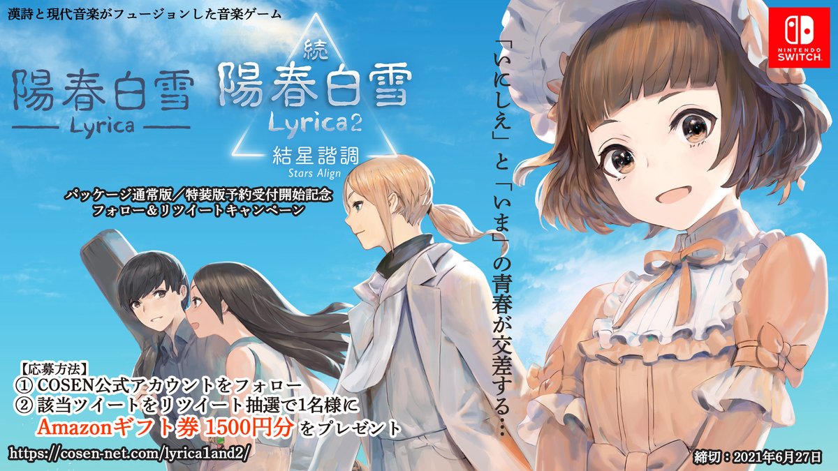 漢詩と現代音楽が融合した音楽ゲーム #NintendoSwitch 陽春白雪Lyrica&続陽春白雪Lyrica2予約受付開始記念フォロー&リツイートキャンペーン