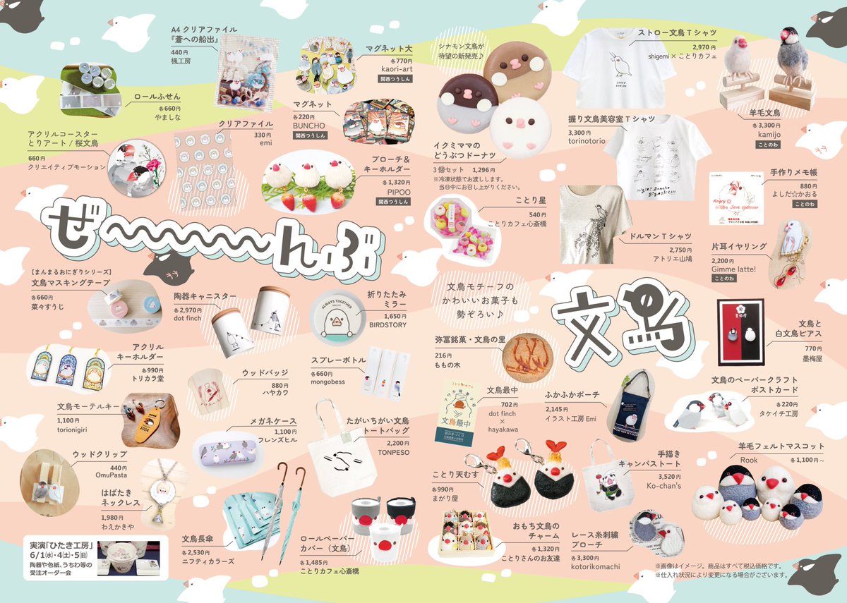 全国各地から文鳥グッズやスイーツが