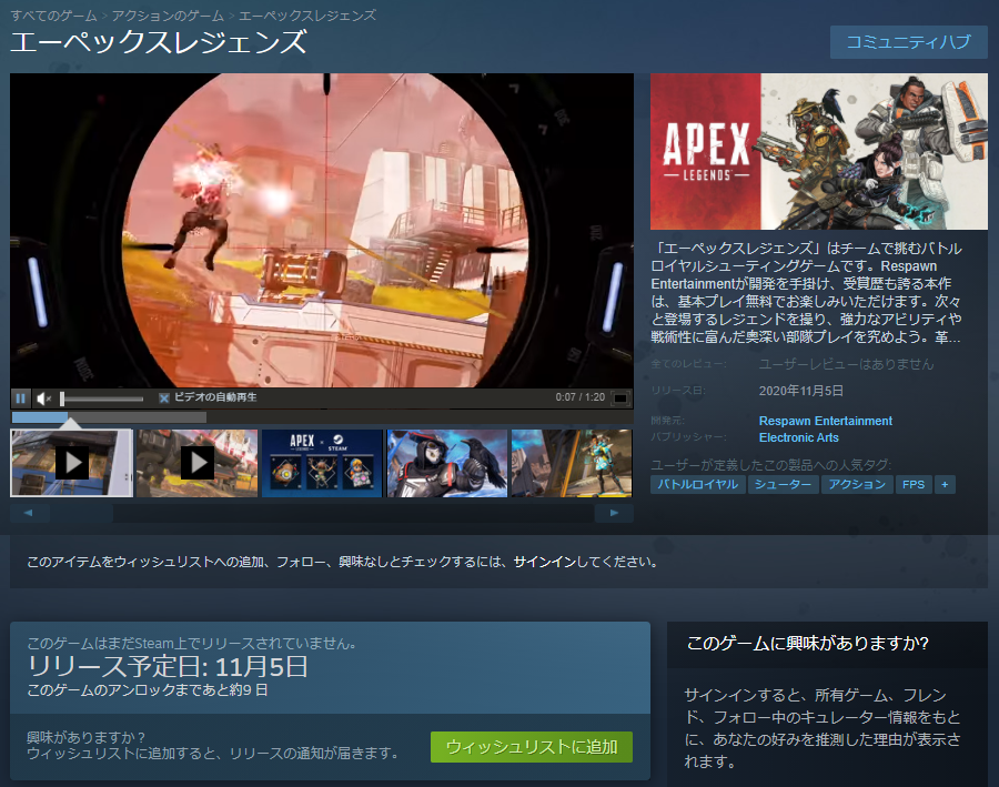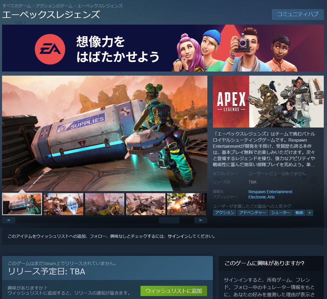 Steam に APEX のページが追加されました!
