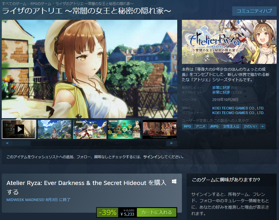 太ももの錬金術師と話題な ライザのアトリエ Steamで39%OFFのセール中です!