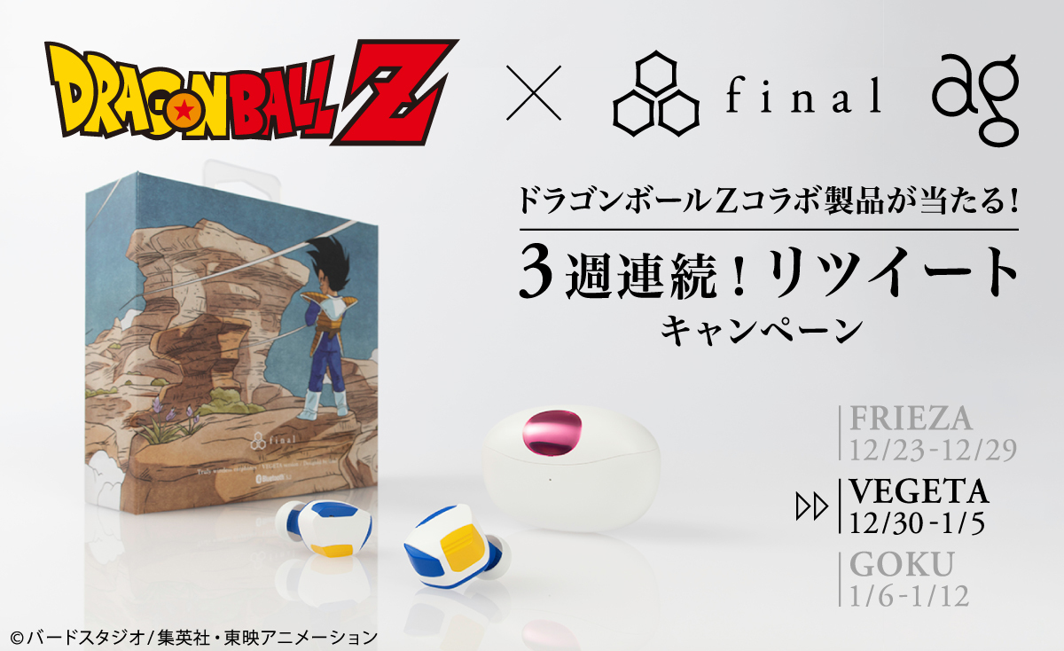 第2弾は「ドラゴンボールZ×final 完全ワイヤレスイヤホン ベジータモデル」を5名にプレゼント!