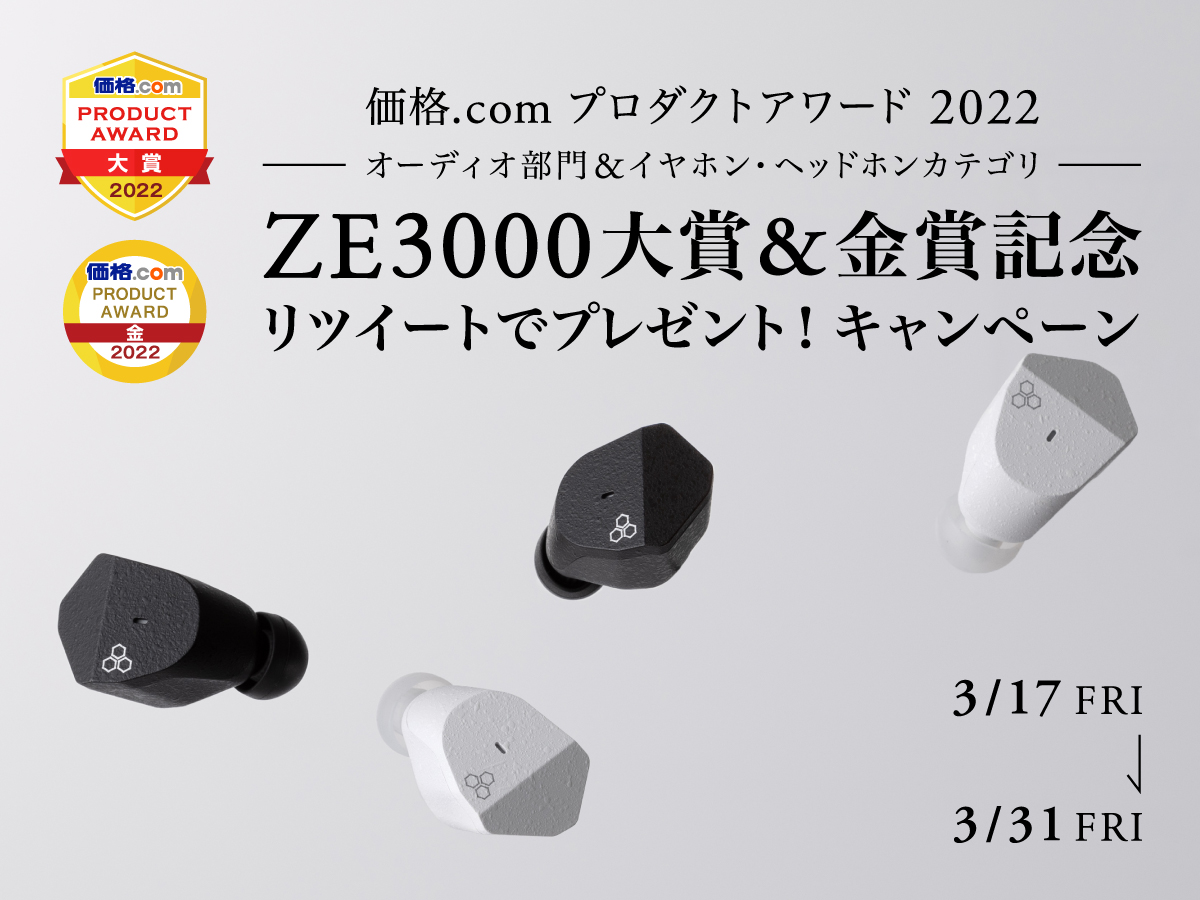 #ZE3000 の価格.comプロダクトアワード2022「オーディオ部門大賞」イヤホン・ヘッドホンカテゴリー「金賞」のW受賞を記念して、3名様にZE3000をプレゼント!
