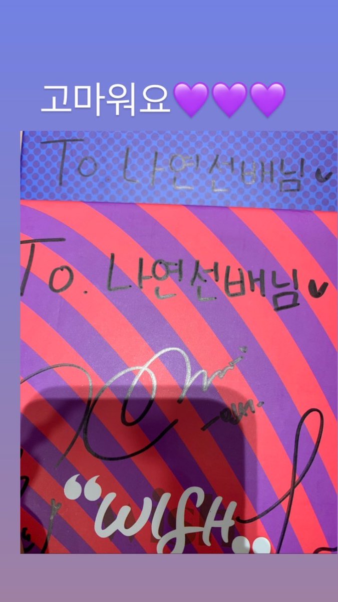 "I was so happyx100 to personally meet the seniors that I've respected since debut and greet them and give an album to them. Thank you 💜 Congrats on #1! I want to be a singer who can give happiness to many people on stage like you. I love you ❤" @JYPETWICE twitter.com/wooah_nv/statu…