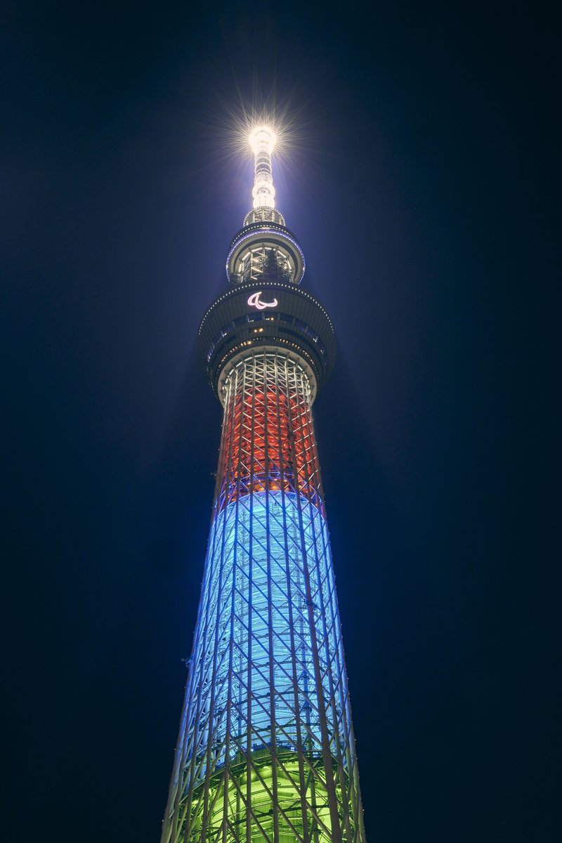 Tokyo Skytree lit up in #Paralympics colours 👌