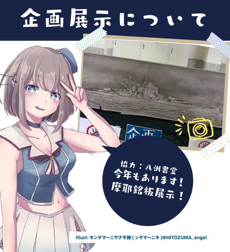 【企画展示について】万作様(八洲書堂様)@bansaku_88のご厚意により、神戸の摩耶山にある天上寺の巡洋艦摩耶の銘板の木型を特別展示いただけます!