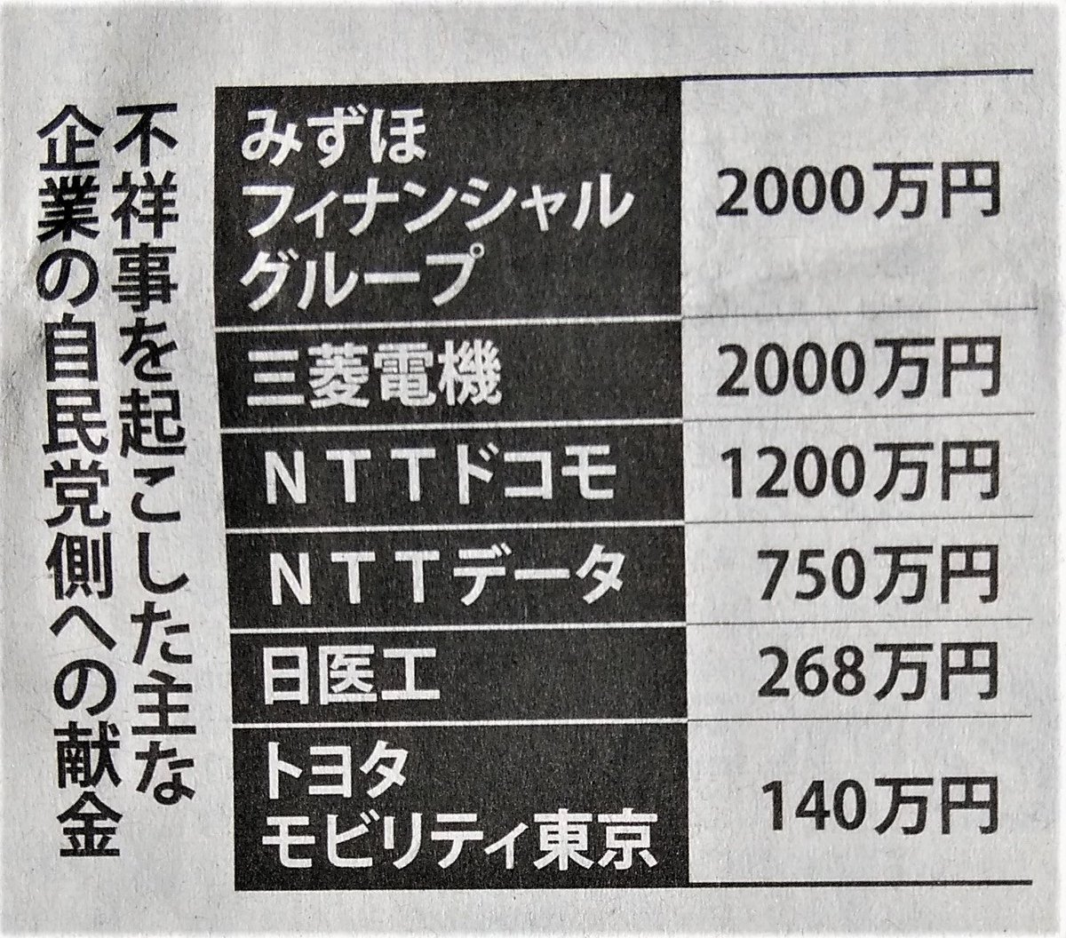 『GoToトラベルを1895億円で受託したツーリズム産業共同提案体から、自民党幹事長の二階俊博氏をはじめ自民党の議員37名に対し、少なくとも約4200万円の献金が行われている事が分かった』