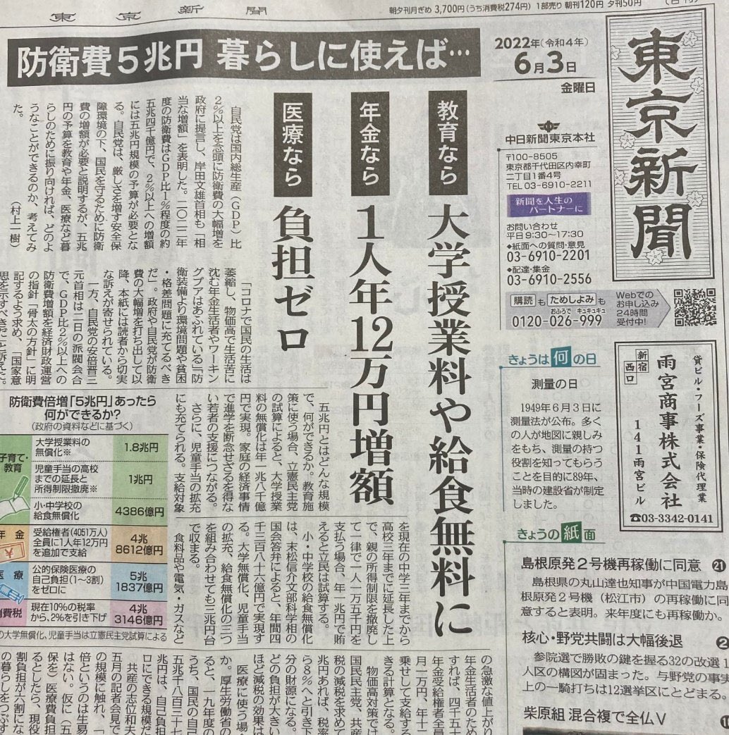 防衛費倍増も軍需産業から見返りの献金を得るのが目的だし、自民党は完全に腐っている。