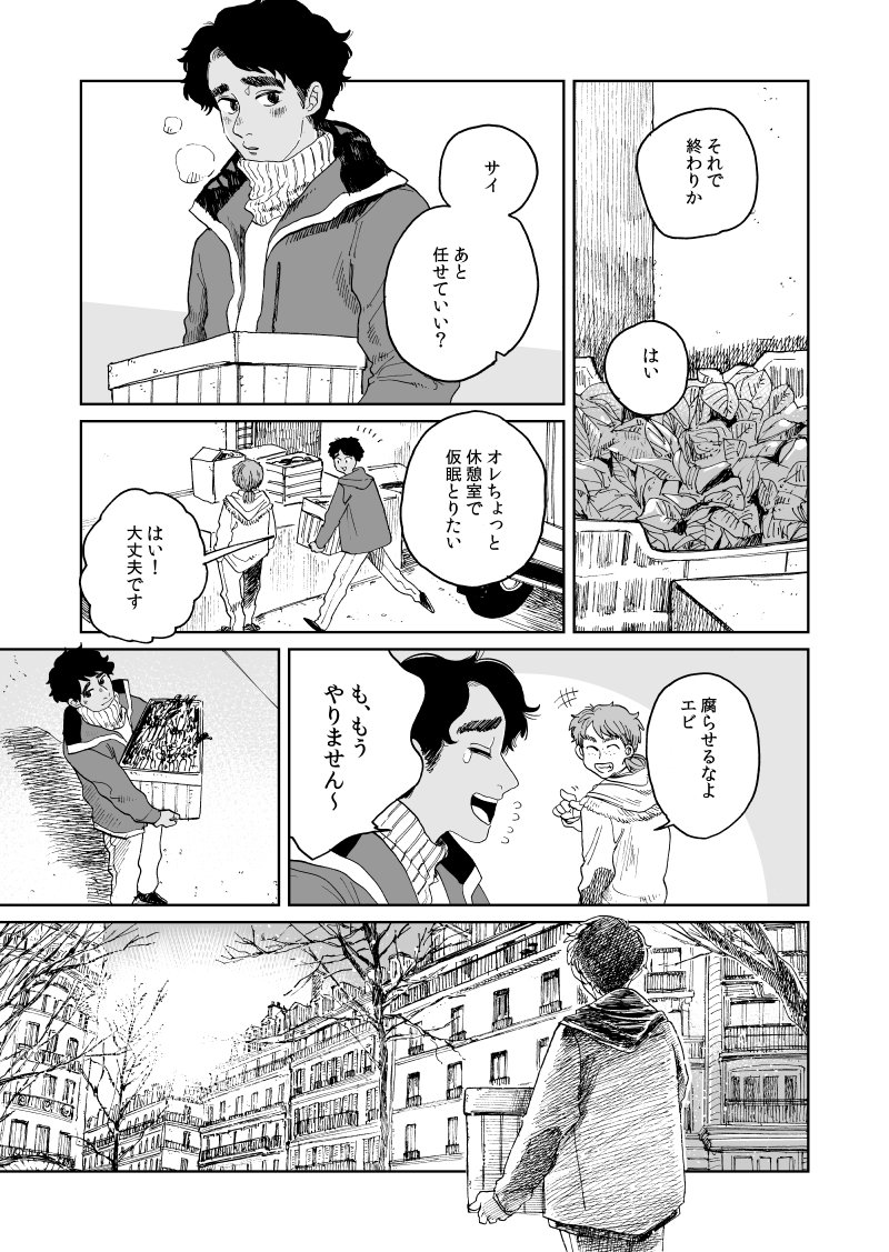 Artiste(アルティスト)22話がバンチwebで更新されました~4巻の続きから ジルベールが10代後半から働いていたホテルのレストラン時代のお話です、前髪が短い