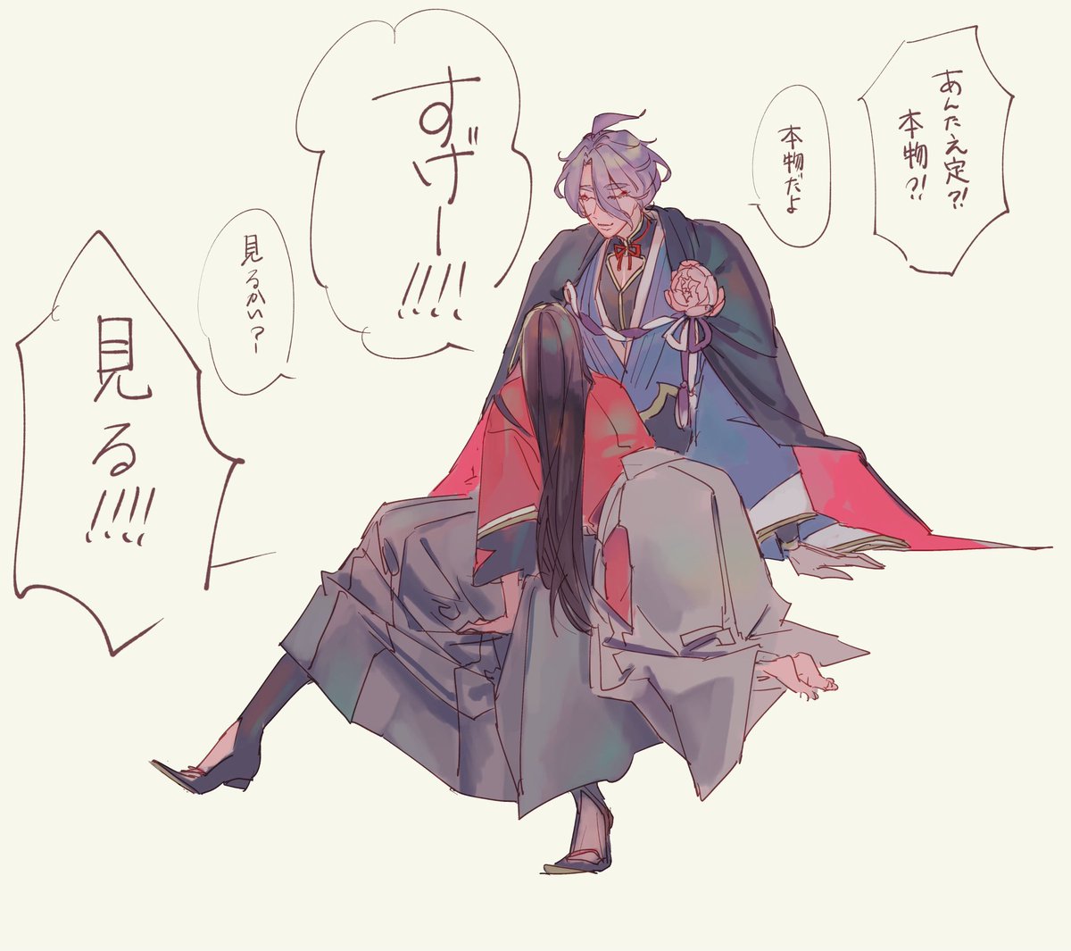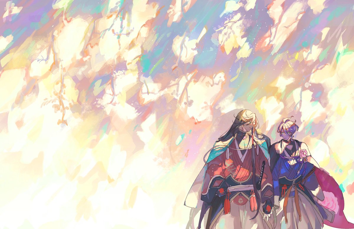 刀剣男士の変身バンクがみたい 歌仙兼定は内番の襷や着物が解け身体はキラキラの光につつまれキュピンという音と弾ける光とともにインナーに包まれた身体がでてきてここで一時停止