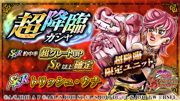 新登場の超降臨限定ユニット「ディアボロ(ブチャラティ) SSR 白」が「10回!!」ガシャ10の倍数セット目に確定ッ!