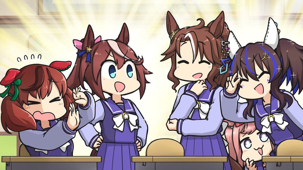 ネイチャとテイオーとパーマーとヘリオスとデジたん。