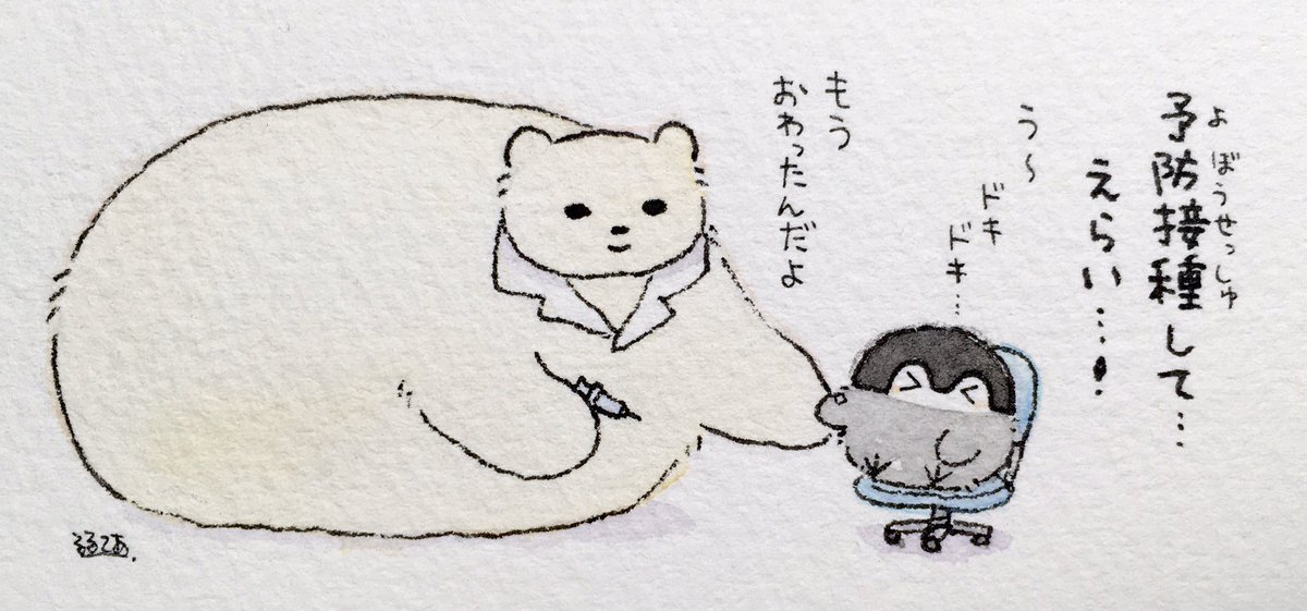 予防接種する人とコウペンちゃん