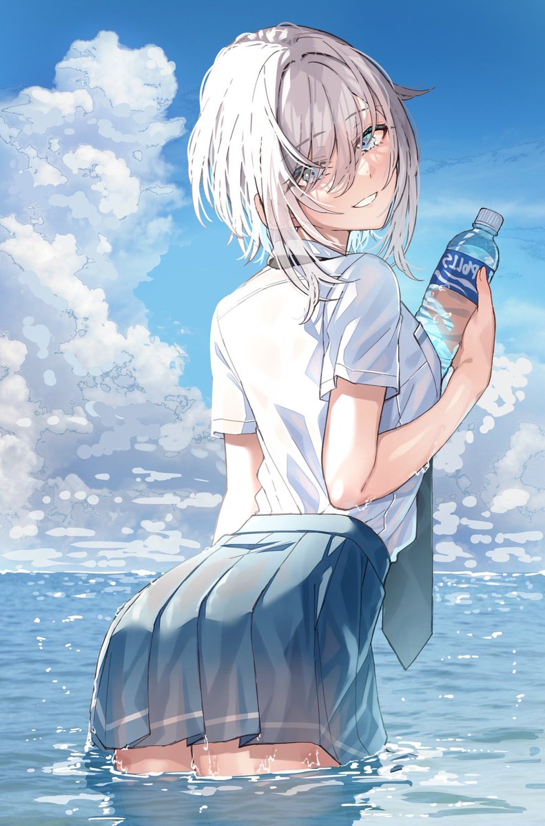 夏ぽい女の子描いてます。銀髪多め。