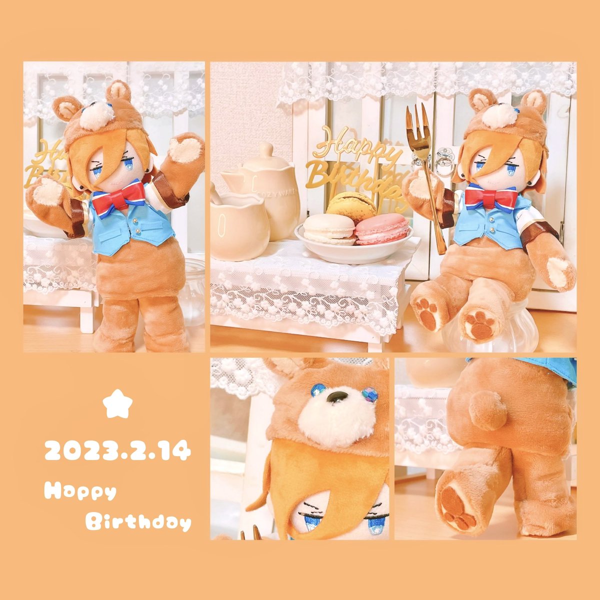 𝐻𝑎𝑝𝑝𝑦 𝑏𝑖𝑟𝑡ℎ𝑑𝑎𝑦🧡 今年はレンスターくんに マカロンが美味しいカフェのお客さん (彼氏さん)になって貰いました🧸🍴