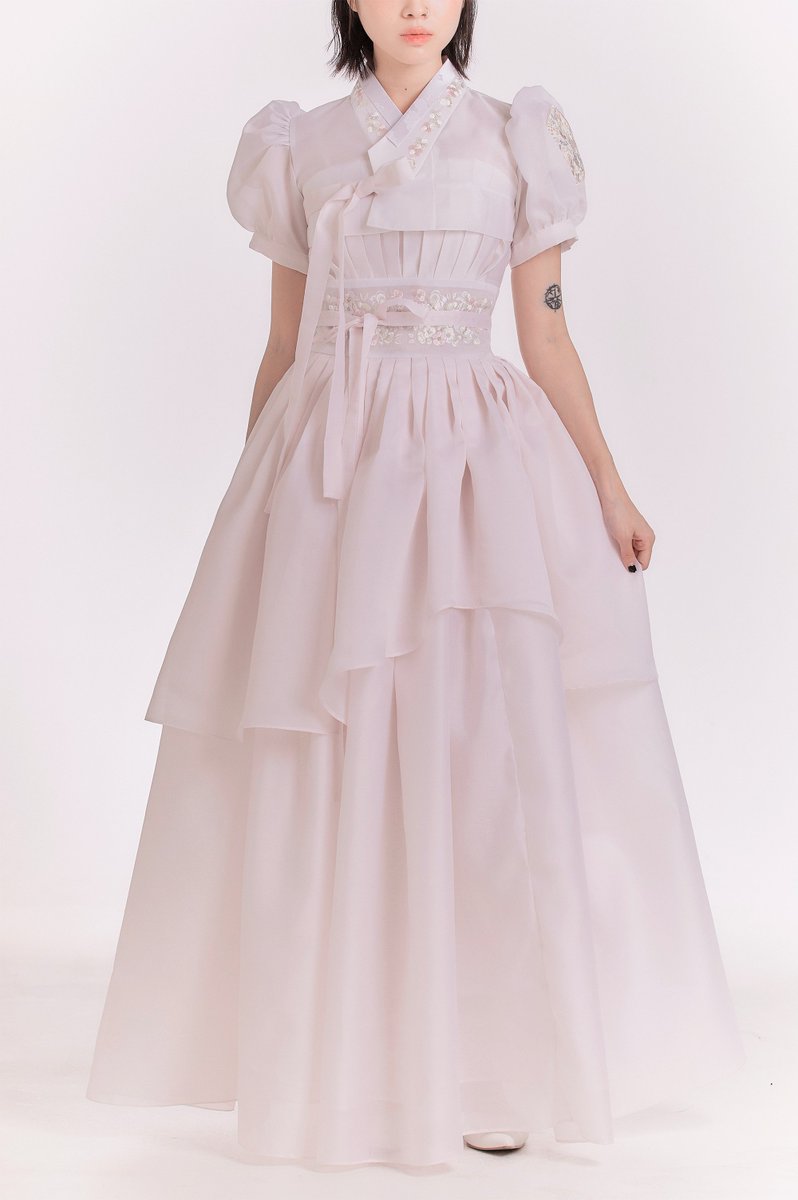 가장 마음에 드는 미디기장. 인어한복의 매력과 강점이 잘 드러나는 길이라고 생각한다. 몇달간 고심하고 수십번의 시행착오를 거쳐 만든 살구백색 조합은 한복원단만이 낼 수 있는 은은한 색감을 살리되 기성복과 함께 코디하기 용이한 아이템이 되도록 구성했다. 최종본 완성하고 눈물찔끔 흘렀음 twitter.com/saida_daily/st…
