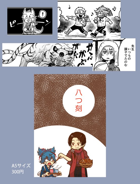 3月18日春大祭の新刊『八つ刻』のサンプルです;;ほのぼのころころした内容です。以前出したコピー本のネタも含まれています。