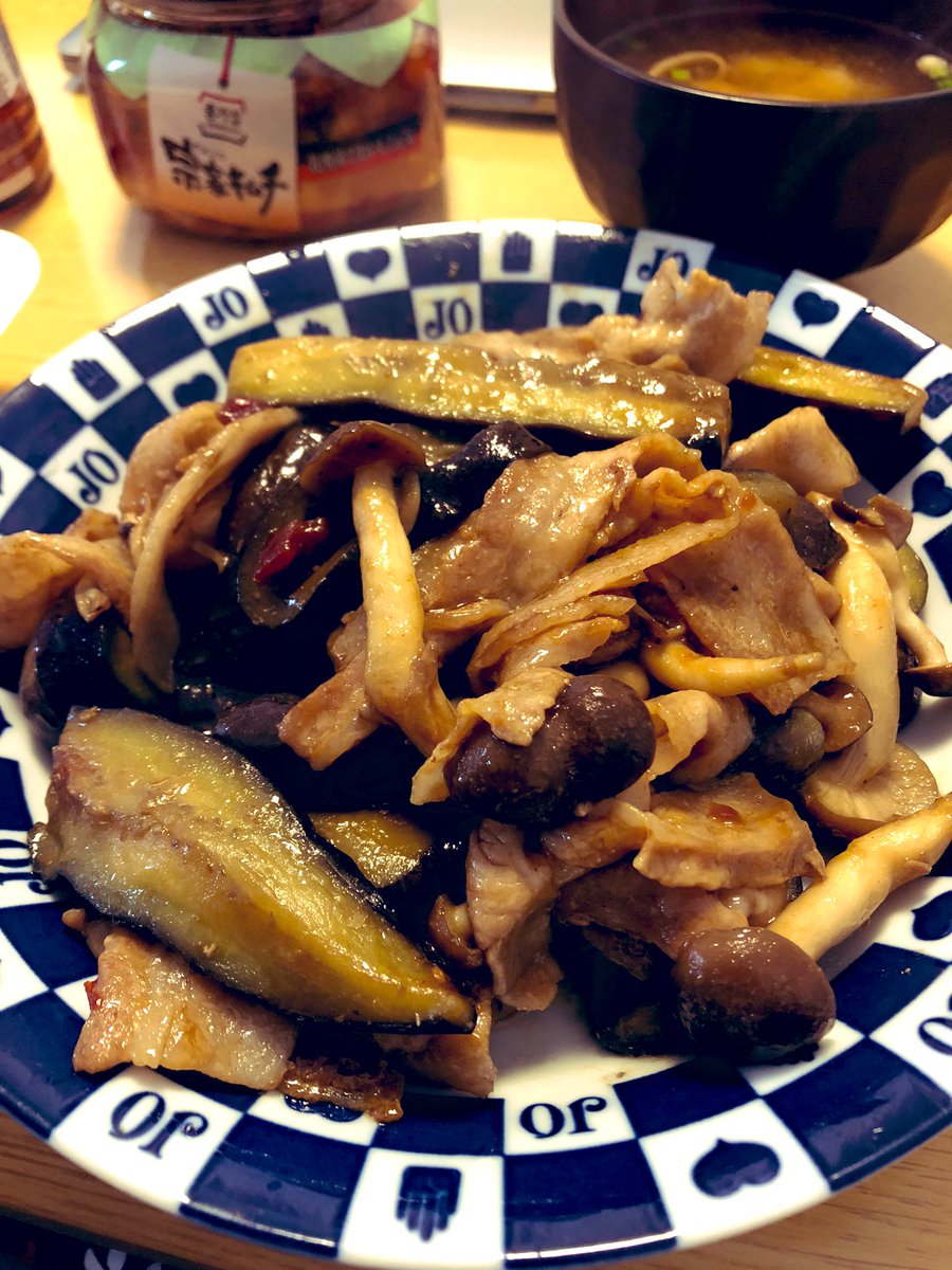 本日の夕飯は、豚肉と茄子としめじのスタミナ炒めです。