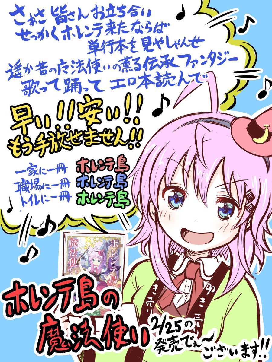 明日、2月25日はいよいよ『ホレンテ島の魔法使い』一巻発売日になります! それ売れろったらやれ売れろ! どうぞよろしくお願いいたしま~~~~~す!!