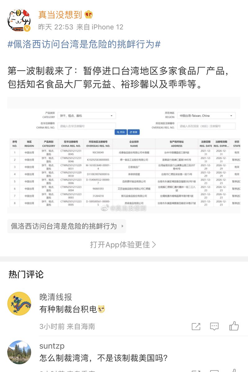 几个台湾小粉红在佩洛西下榻的酒店示威,挥舞五星红旗高呼“佩洛西滚出去,我们都是中国人”。墙内媒体把这当做佩洛西不受台湾人民欢迎的大新闻报道,让墙内人民感受一下台湾人民享有的言论自由和示威自由,高级黑嘛。