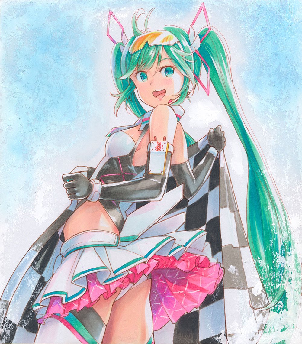 レーシングミクさん2022改 イラスト制作中¶(⁄•˅̮•∖)⁋ 完成まであと少しっ