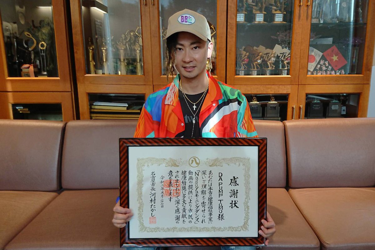 TOMOが「Nagoyaモーニングダンス」で名古屋市民の皆様の健康増進に貢献したとして、名古屋市より感謝状を授与されました!dapump.jp/news/detail.ph…