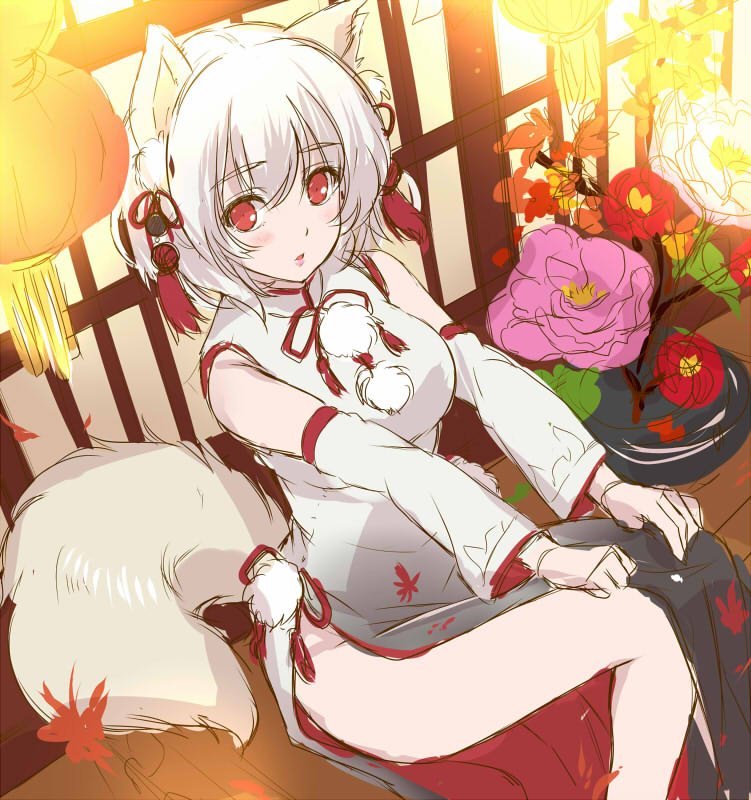 「フラワーナイトガール」にて本日実装されました巫女ヒガンバナさんを描かせていただきました。足元の鞠の中に秘密がありますよ! \コン!/ #フラワーナイトガール