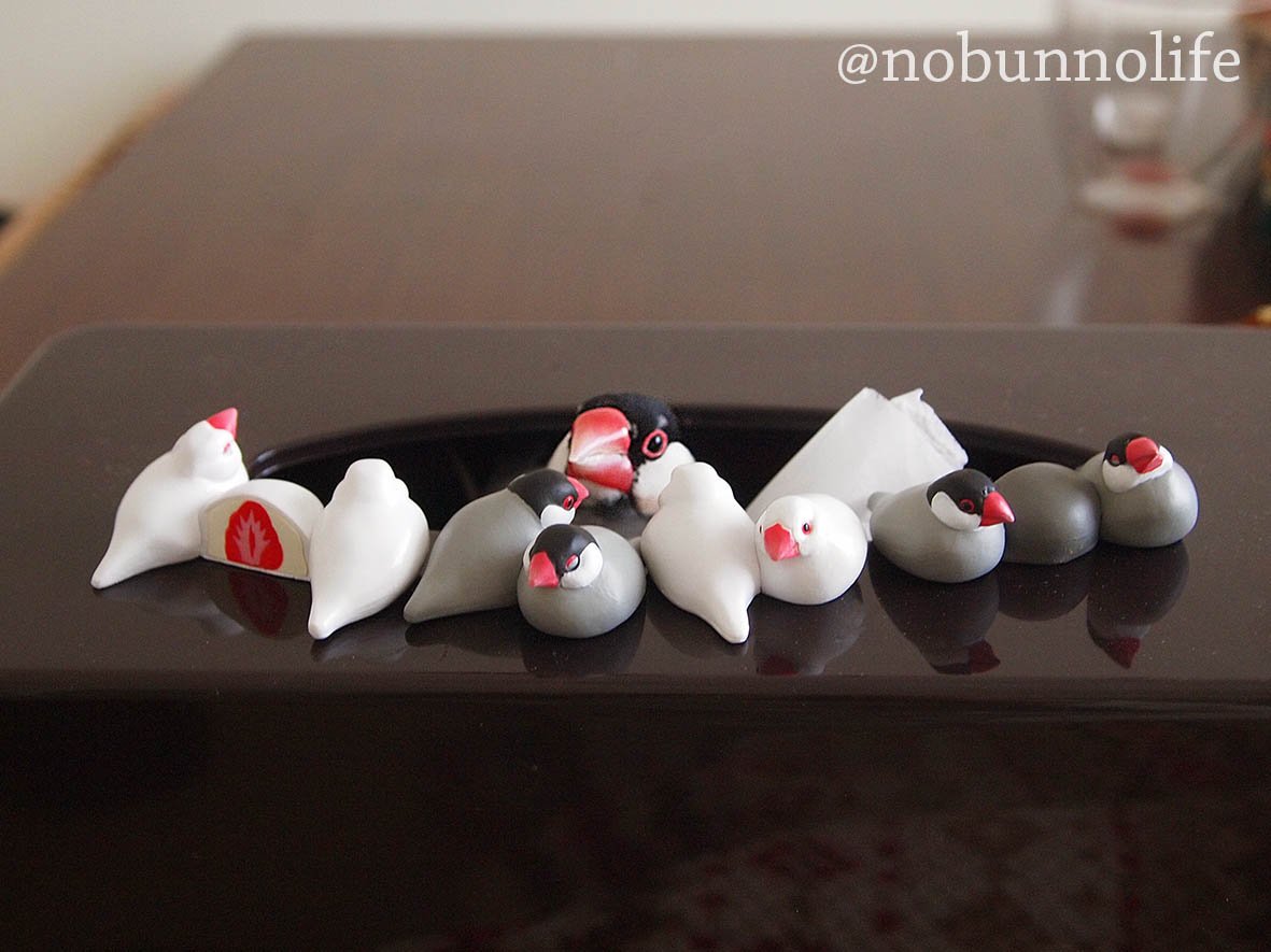 この時期は文鳥のこたつ漁が盛ん。 こたつにかかっている文鳥を見逃さないよう、最大限の注意を払っています。