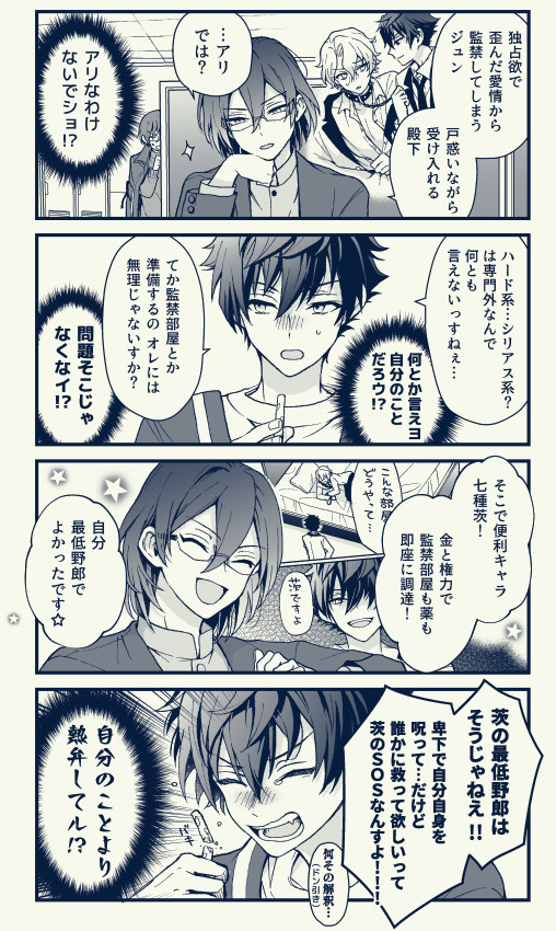 凪茨&つむ夏 前提で、茨と夏目がえっちしないと出られない部屋でキャットファイトするお話🐱💥🐱