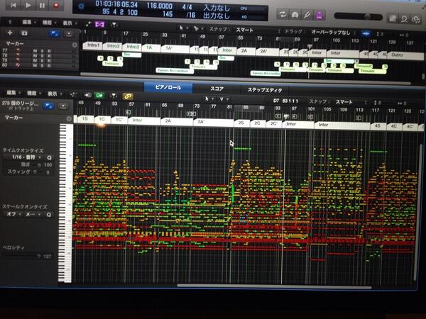 数え切れないですが過去最多ではないかと。現行のpro tools(レコーディングに特化したDAW)は256トラックまでが限界なんですけどフル活用でした!“@SKOW_AYA0531: @Nakajin_sekaino 炎と森のカーニバルでは何種類くらいの音を使っているんですか?”