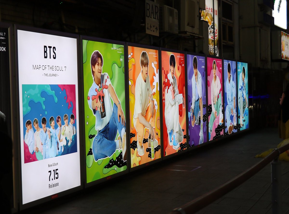 7/15(水)発売 日本4thアルバム『MAP OF THE SOUL : 7 ~ THE JOURNEY ~』の広告を7/15(水)まで大阪・道頓堀で掲出中☺️