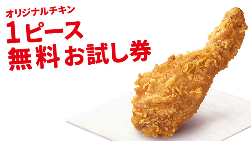 9/6(火)-9(金)ケンタッキー公式アプリで「オリジナルチキン1ピース無料お試し券」配布。創業者カーネル・サンダースの誕生日『カーネルズデー』を記念して行うキャンペーン。引換期間は9/6(火)-19(月祝)まで→event-checker.info/kfc-colonelsda…