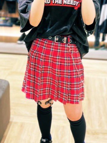 【盗難】 本日18時過ぎくらいにカワイイ赤いチェックのスカートが盗難されました😭 家賃の高い秋葉原という土地で、スタッフ間で話し合いながら仕入れた大切な商品は、商品原価以上の費用がかかっているんです。 防犯カメラで確認していますが、まだ人の心をお持ちでしたらこっそりDMしてきてください