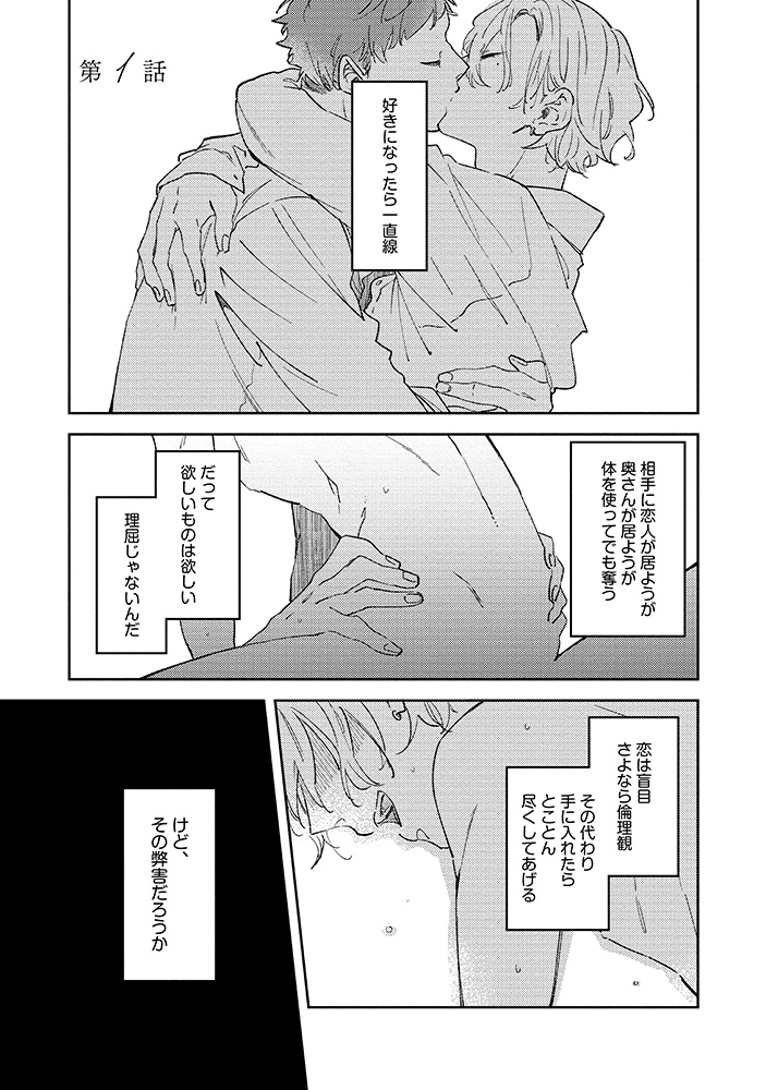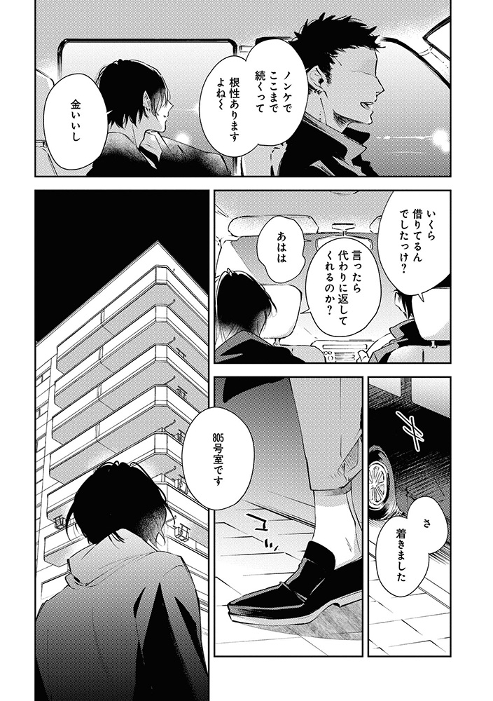 気鋭の若手ヤクザ×元男娼の組長秘書BL『お金ありきの関係ですが(2)限定版』の6話サンプル。途中ページを飛ばしているのでちゃんと繋がっていません。pixivは6話全ページ掲載してます。(1/4)
