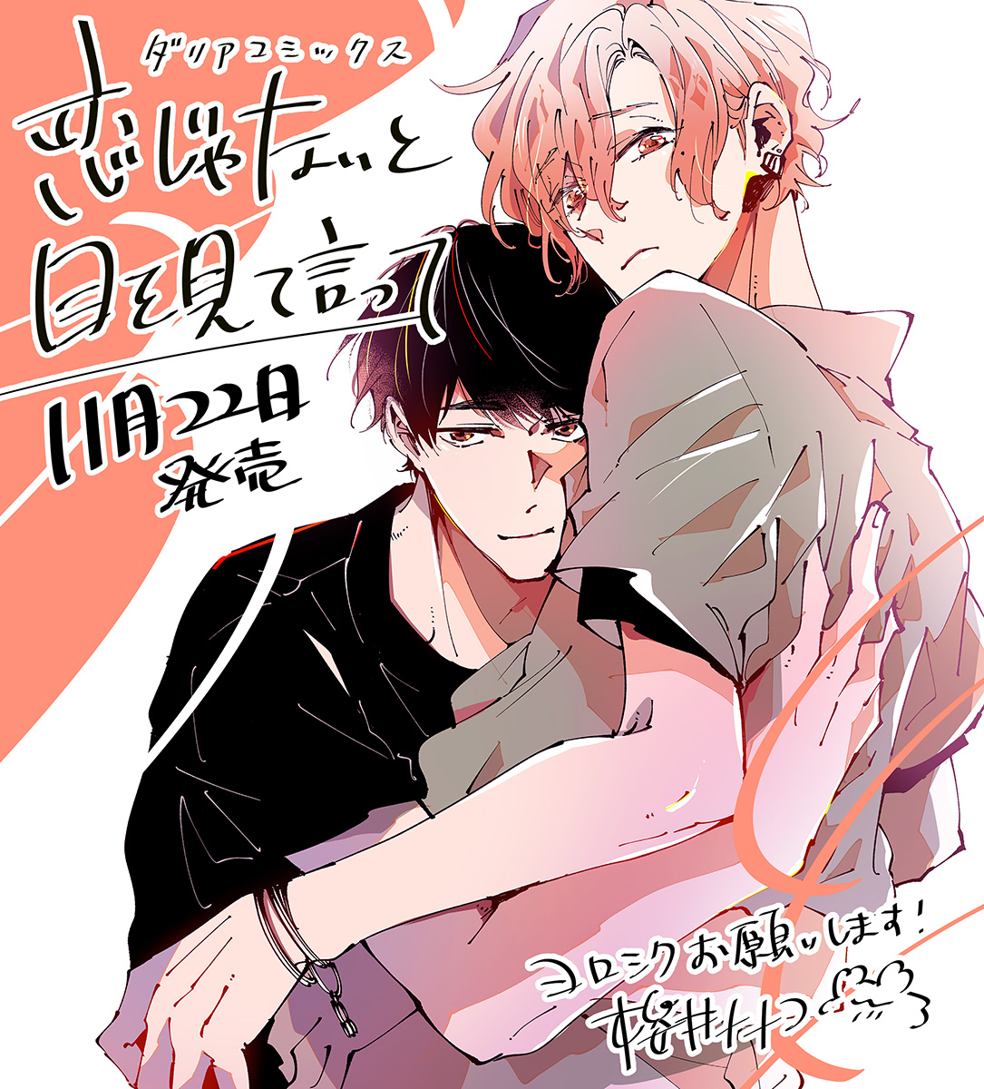 ダリアコミックス『恋じゃないと目を見て言って』本日発売です🥳🥳🥳一途な年下×素直になれない寂しがり屋のお話、どうぞよろしくお願いします❣