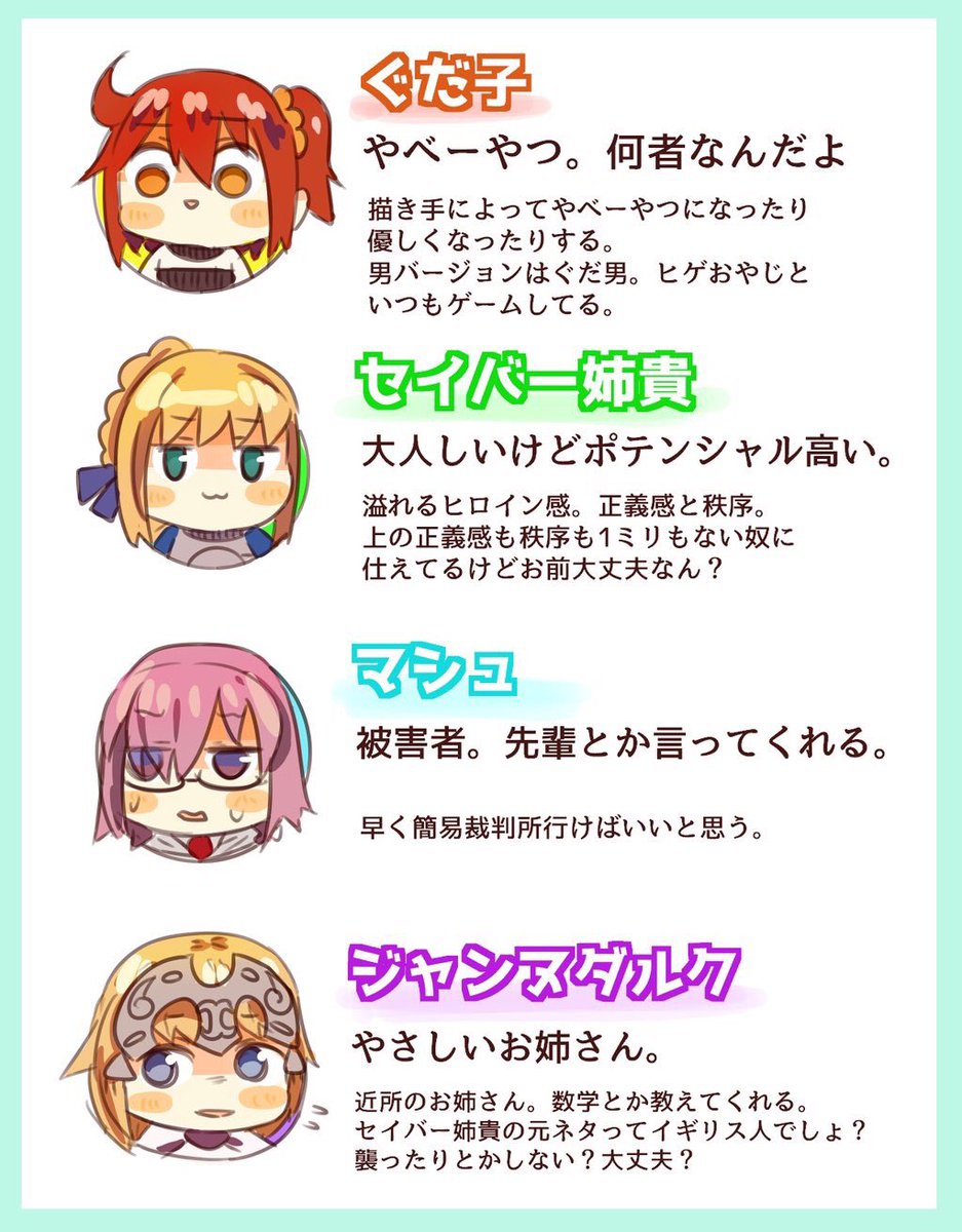 TLで収集したFate知識だけでよく見る人ら描いた