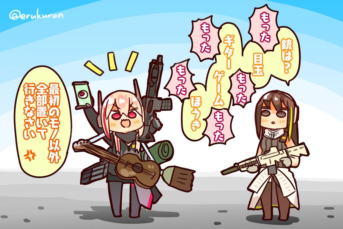 出撃前のM4A1姉貴とSOPMODちゃんの絵です