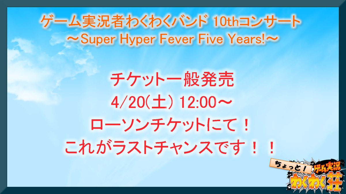 ゲーム実況者わくわくバンドの10thコンサート、おかげさまで東京・大阪公演ともチケットが完売しました!