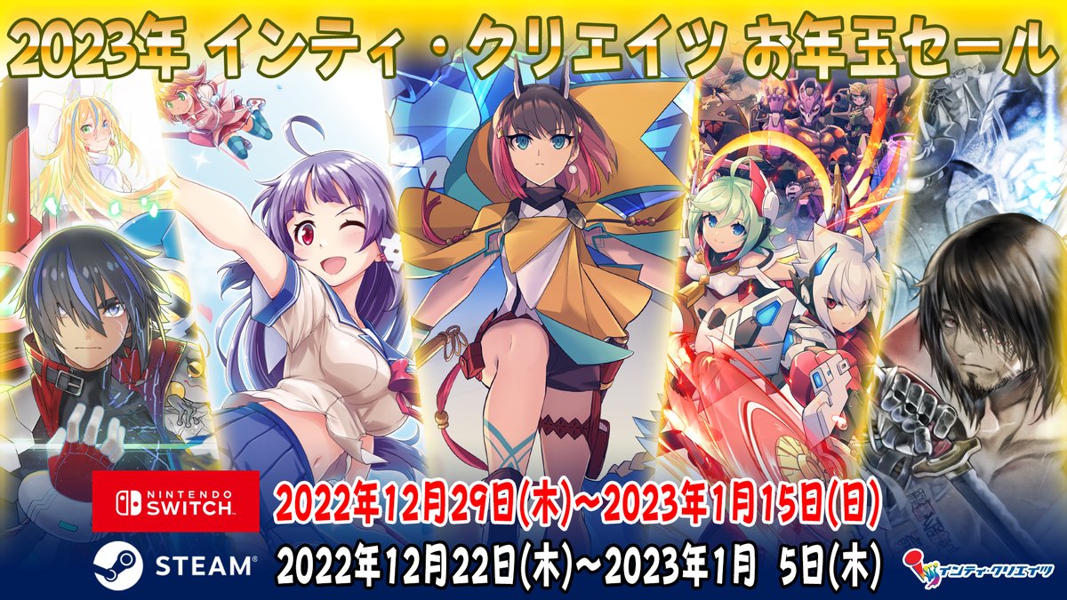 【告知】新年を祝いNintendo Switch、Steam(PC)対応ソフトを対象に『インティ・クリエイツ お年玉セール』を実施中です!気になっていたソフトを、この機会に是非お楽しみください!