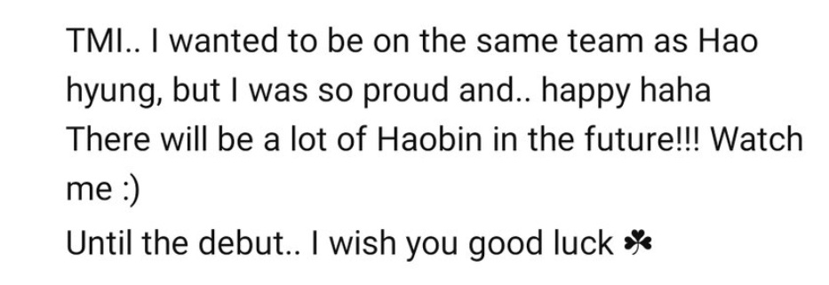 see hanbin chose tomboy because of hao