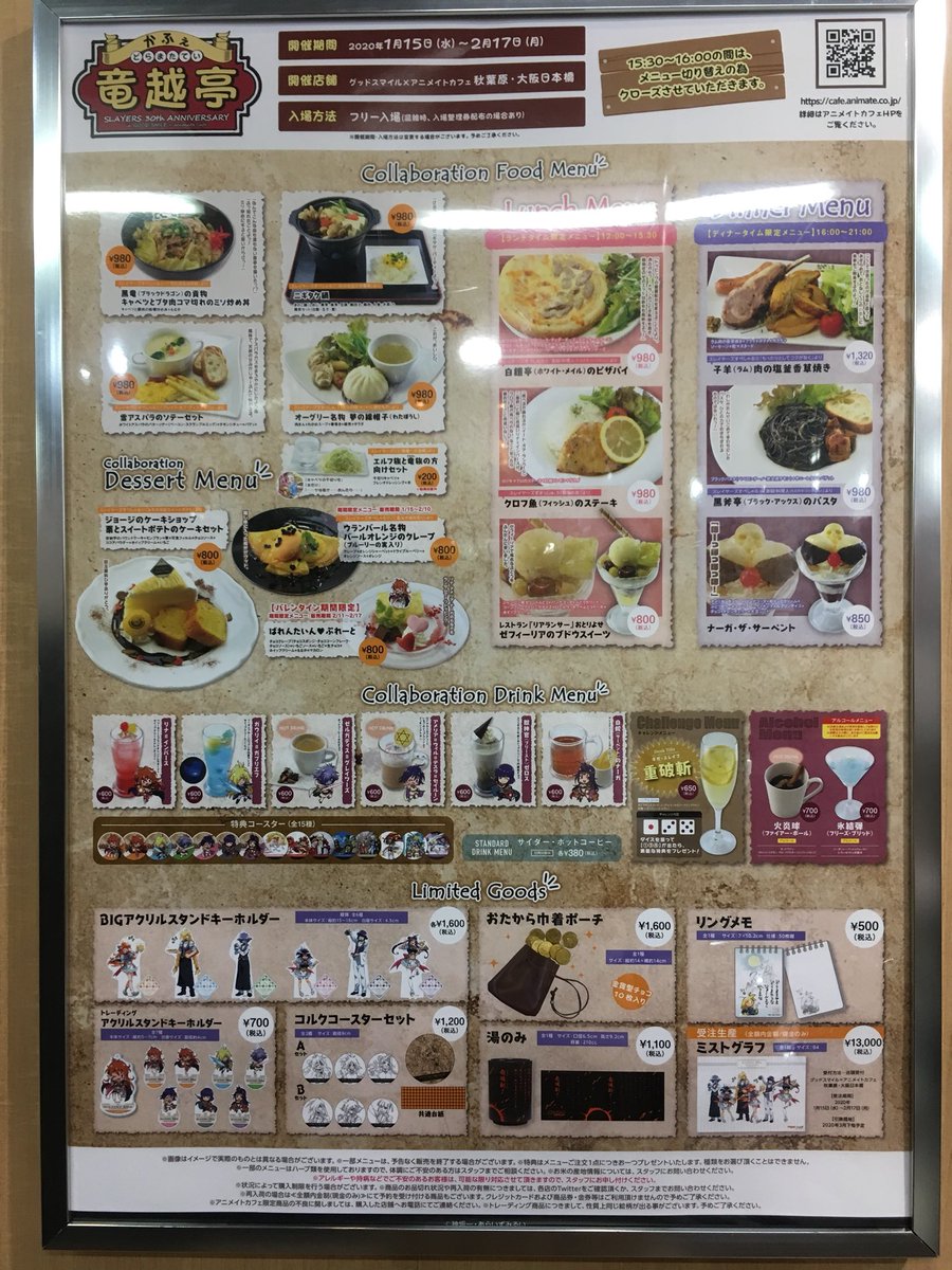本日【アニメイトかふぇ竜越亭】秋葉原店に