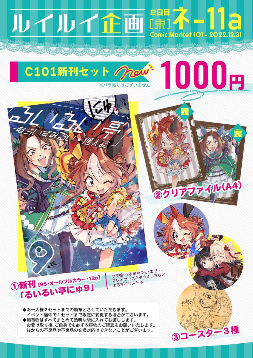 C101で頒布した新刊【るいるい亭 にゅ⑨セット】の再販要望が多いようなので『再販検討』する事となりました。