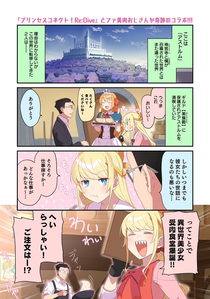 おはよう!本日ファ美肉おじさん更新日…!?これは…プリコネコラボだ~!!!!普段自分がやってるゲーム内で自分の描いた漫画が更新されてるぞ!なんで?
