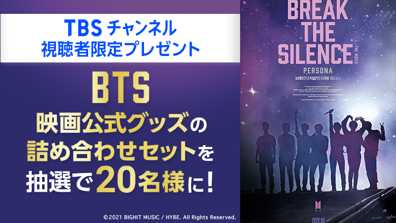 💖#BTS 速報💖BTS最新ドキュメンタリー映画『BREAK THE SILENCE: THE MOVIE』の日本初放送を記念して【公式グッズ詰め合わせセット】を抽選で20名様にプレゼントいたします🎁今日から応募開始です📣BTS映画の世界観に浸ってください💜たくさんのご応募お待ちしておりますね😊 tbsch.eng.mg/19370