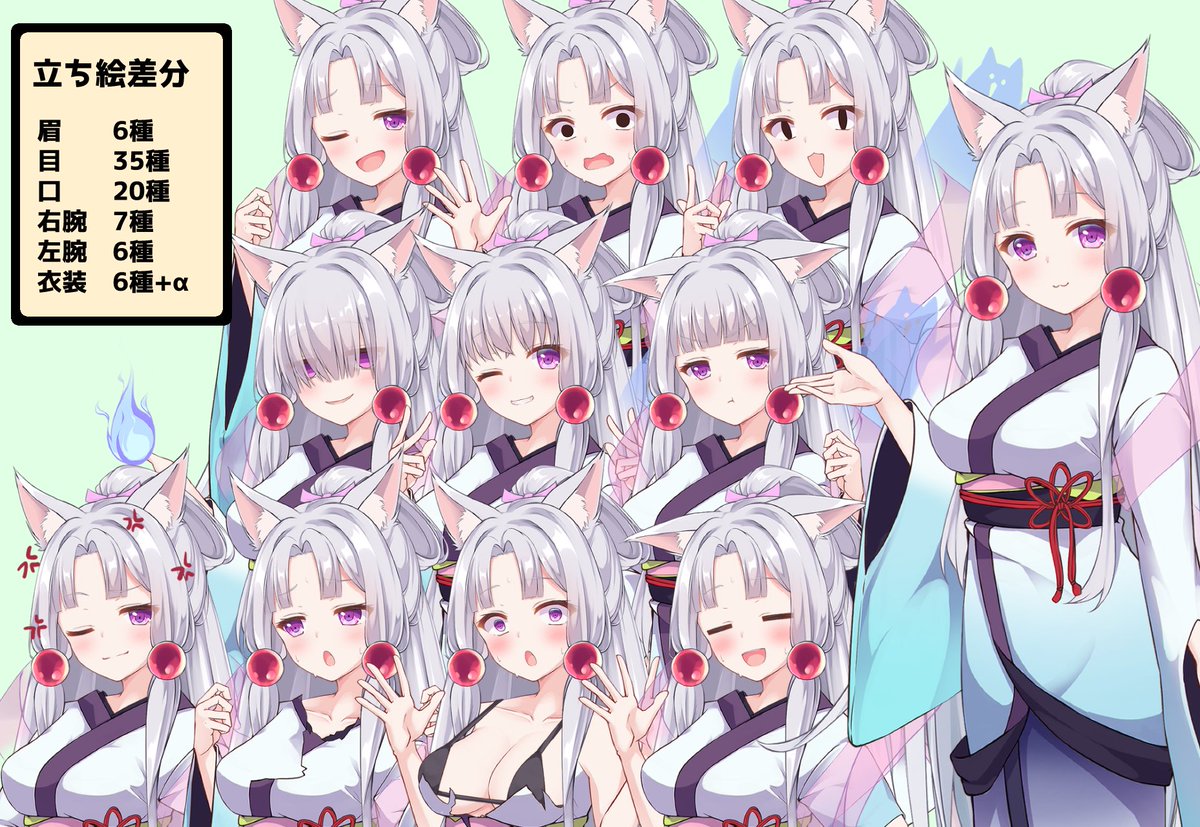 髪の調整、髪目口差分追加、レイヤー順の見直し等