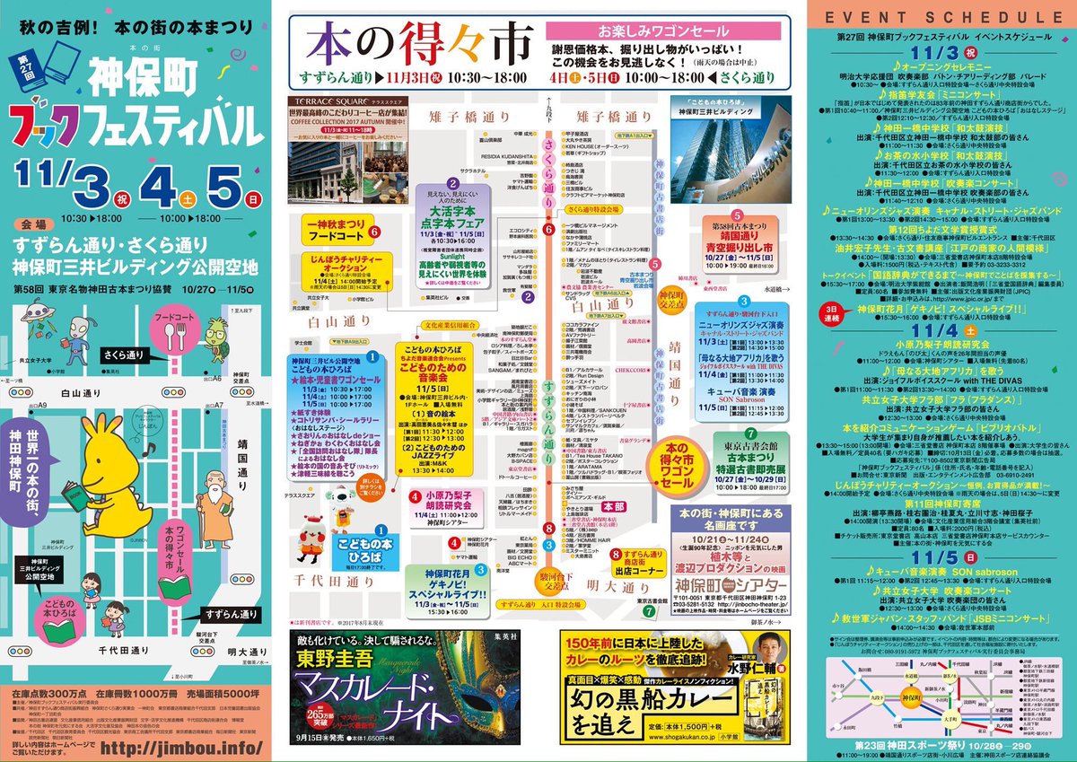 超大型で非常に強い勢力の神保町ブックフェスティバルが接近中ですので、くれぐれも「ちょっと田んぼの様子見てくる」的な、ふらりと神保町に立ち寄るのは非常に危険です。その場合、思わぬ散財に襲われ、「見るだけのつもりがこんなに買っちゃった(ニヤニヤ」という幸福感に包まれることでしょう。