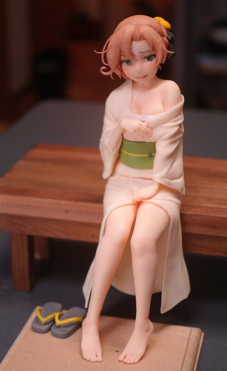 高菜しんの先生(@synno_takana) からいただいた作画データをHiQプリントさんにデカール発注して浴衣を再現しています。市販フィギュアみたいだぁ…