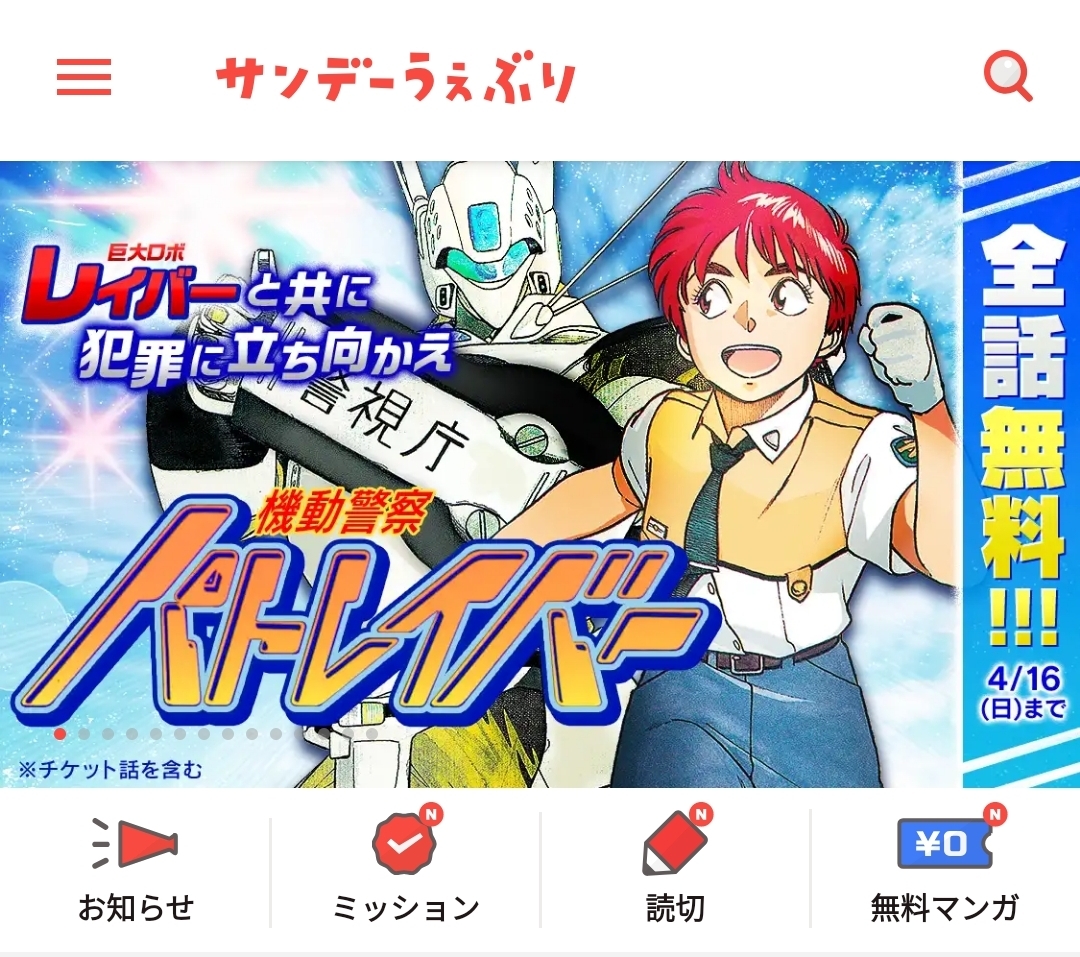 #サンデーうぇぶり で、9月26日(月)まで4巻分無料になっています。「機動警察パトレイバー」