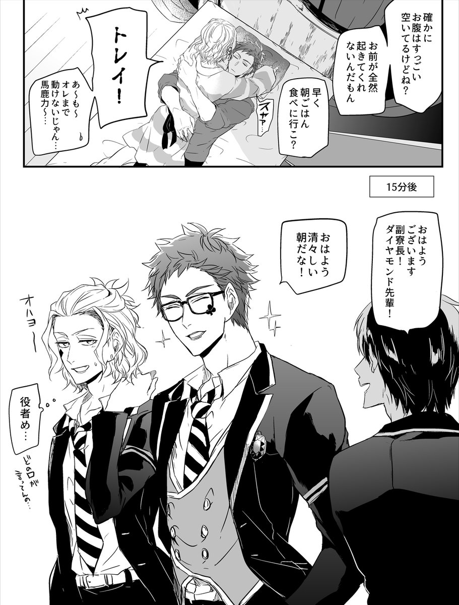 まだ付き合ってないけど距離感の近さに特に疑問を抱いていないケイトと朝が弱いトレイのトレケイ※二人部屋設定