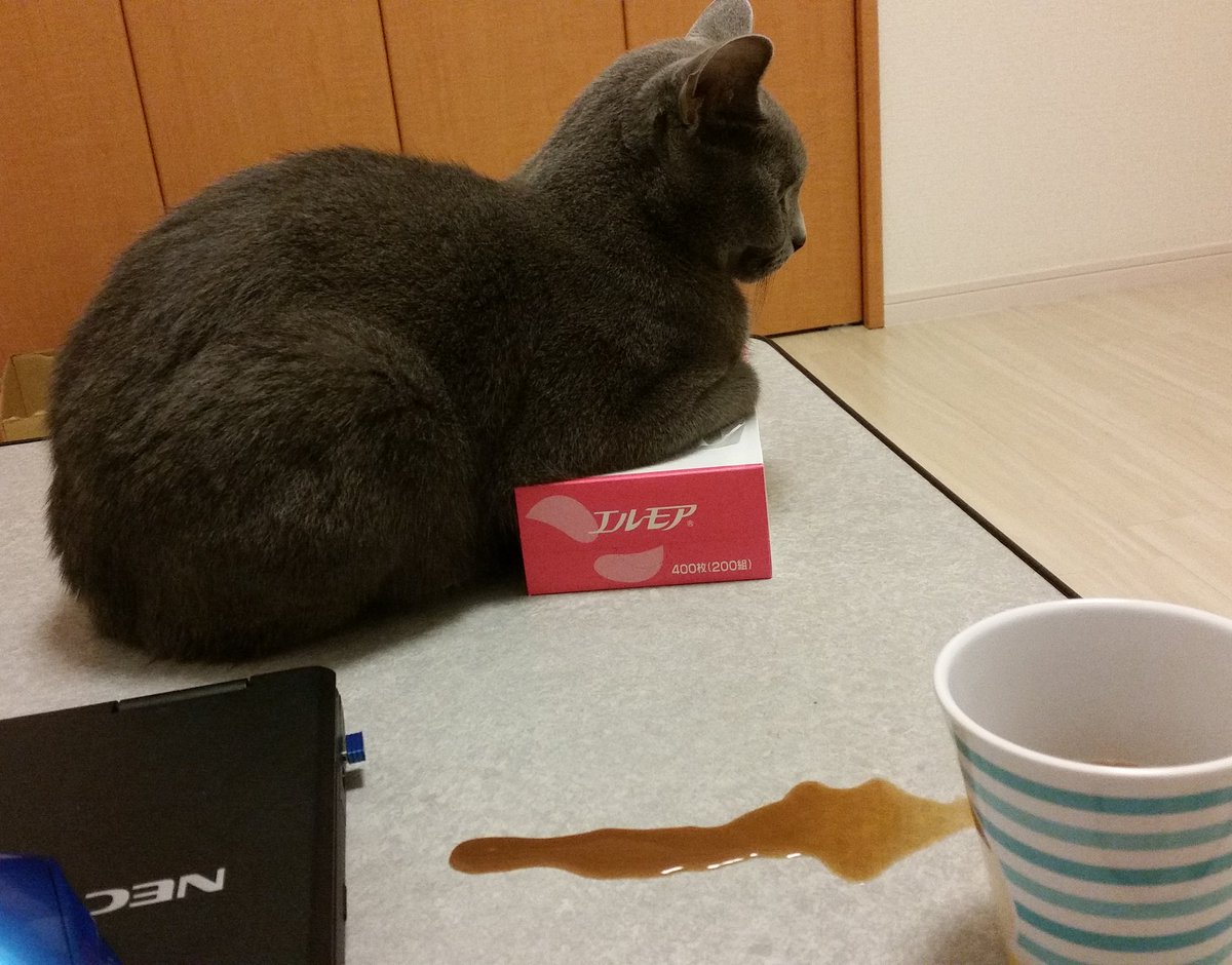 こぼしたコーヒー拭きたいんだがティッシュ占領されてて拭けない。